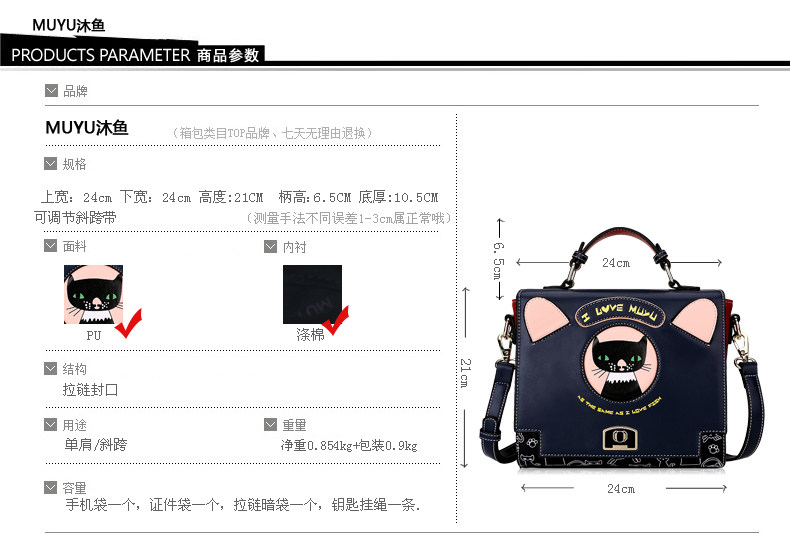 Internal structure: zipper pocket cell phone pocket card slots document bag