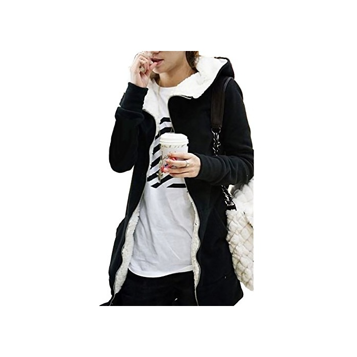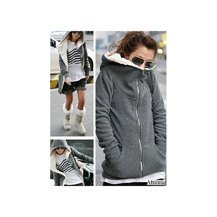 Monoa 따스한 있 뒤기모 ZIP 업 파커 레이디스 캐주얼 뒤 보아 후드 무지 아우터 재킷 스웨트 ( 컬러 2 색 사이즈 M L XL ) XL 블랙