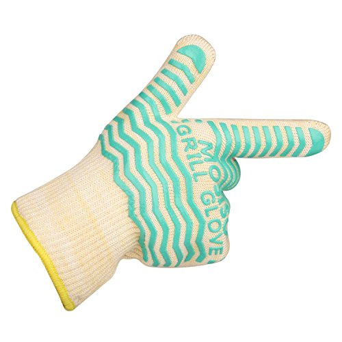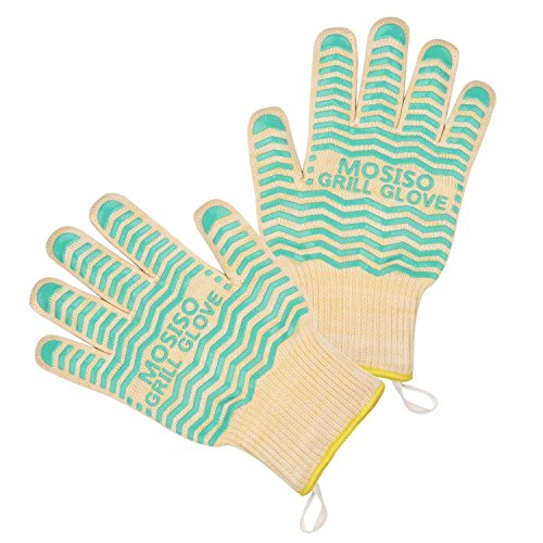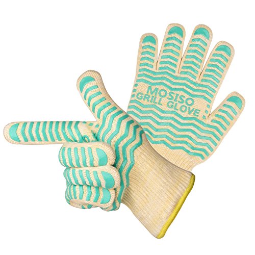 Mosiso BBQ Gloves, Oven Gloves, Premium Quality Extreme Heat Resistant EN407 Certified Non-Slip 5-Fingers Kichen Grill Gloves, Oven Mitts, Pot Holders, Hot Blue