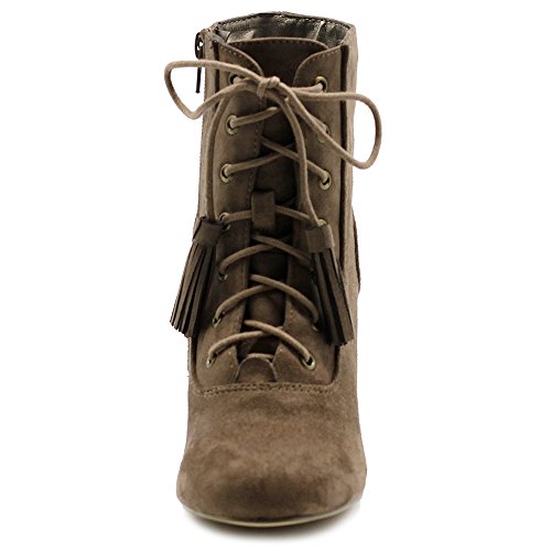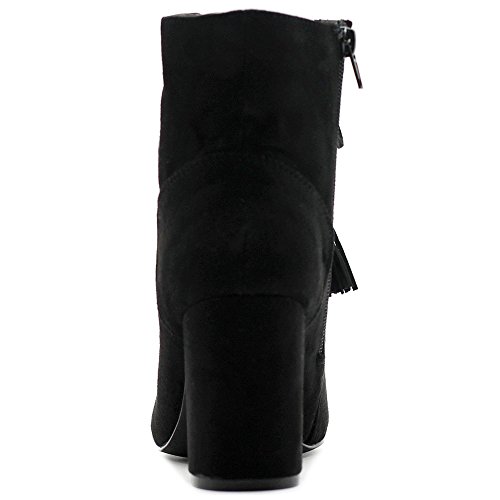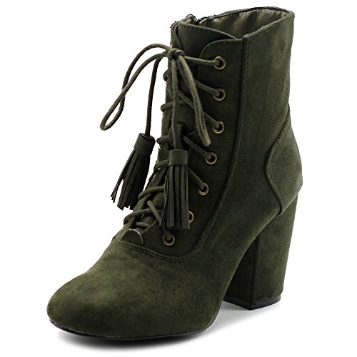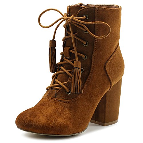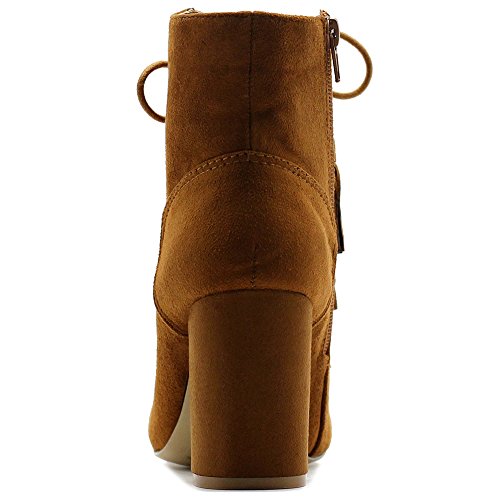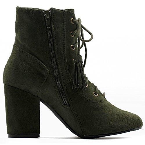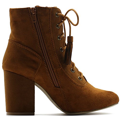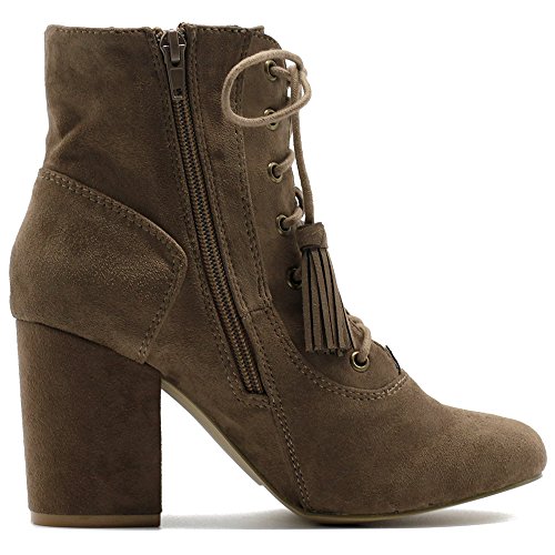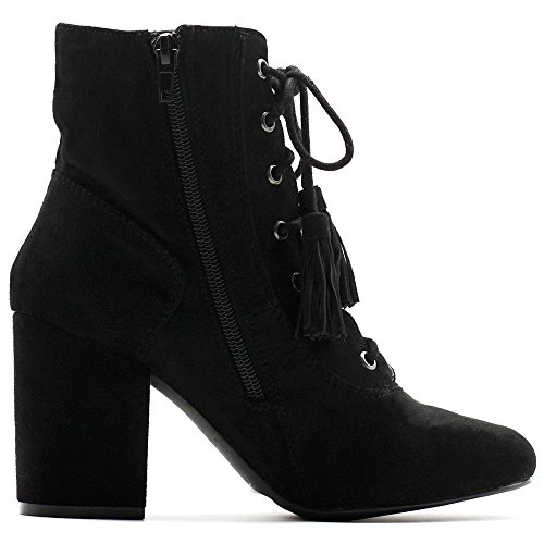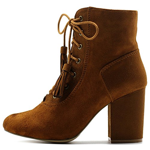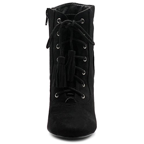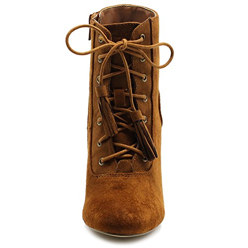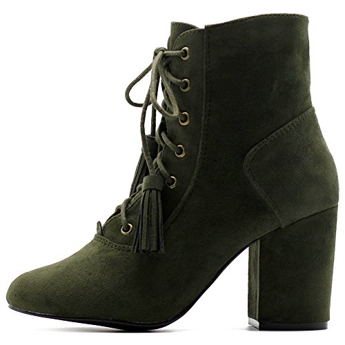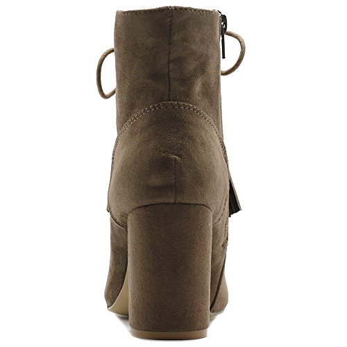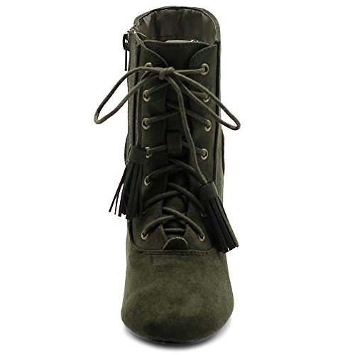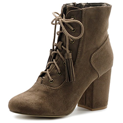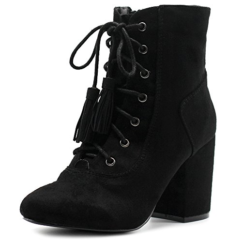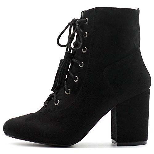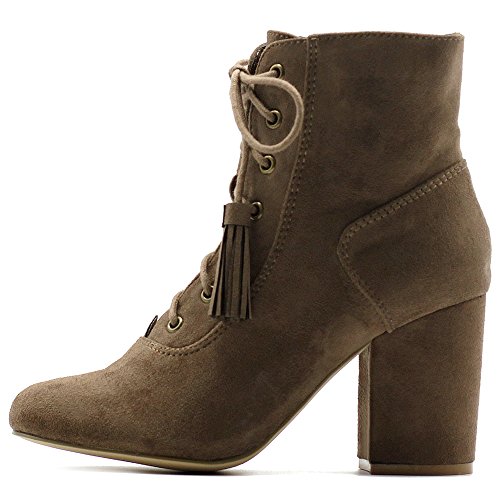 Ollio Women's Shoe Faux Suede Tessle Lace Up Stacked High Heel Ankle Boots