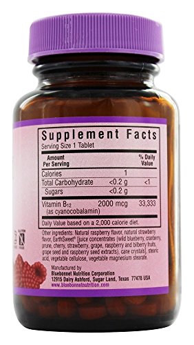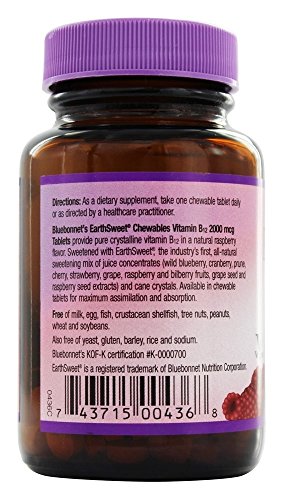 -. Title : Bluebonnet Nutrition - Earth Sweet Chewable Vitamin B-12 Natural Raspberry Flavor 2000 mcg. - 90 Chewable Tablets