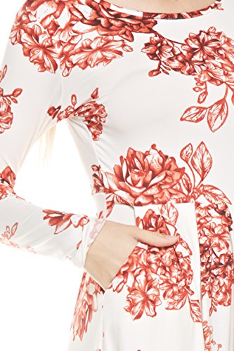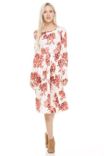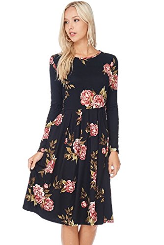 Long Sleeve Dress with Round Collar and pockets. Dress has fitted sleeves, pleats at the waist, loose on hips, and legs. Dress measures from 42.5 to 44 inches long. Model is 5"9 wearing a size small.