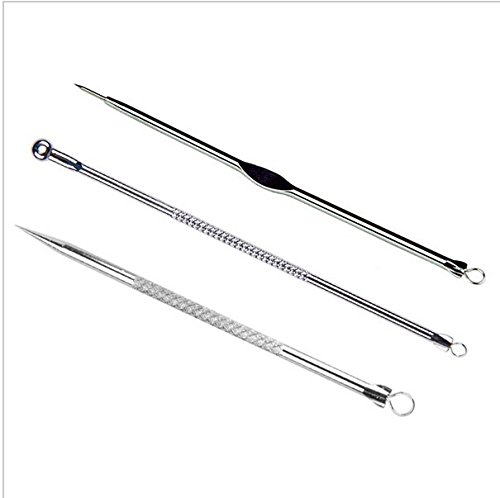 -. Feature : Made with high quality surgical grade stainless steel / Easily Cure Pimples, Blackheads, Comedones, Acne, and Facial Impurities / 3pcs Prefessional High Quality Pushers and Pimple Extractors for Removing Blackheads, Whiteheads,Pimples and Blemishes. / The Best time to remove blackheads is after shower or just use warm face towel over your face to open up your fine pores.