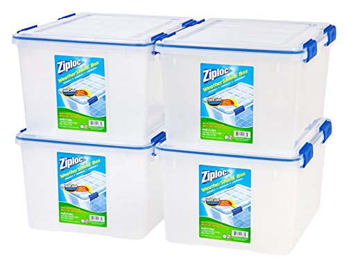 Ziploc WeatherShield 44 Quart Storage Box, 4 Pack, Clear