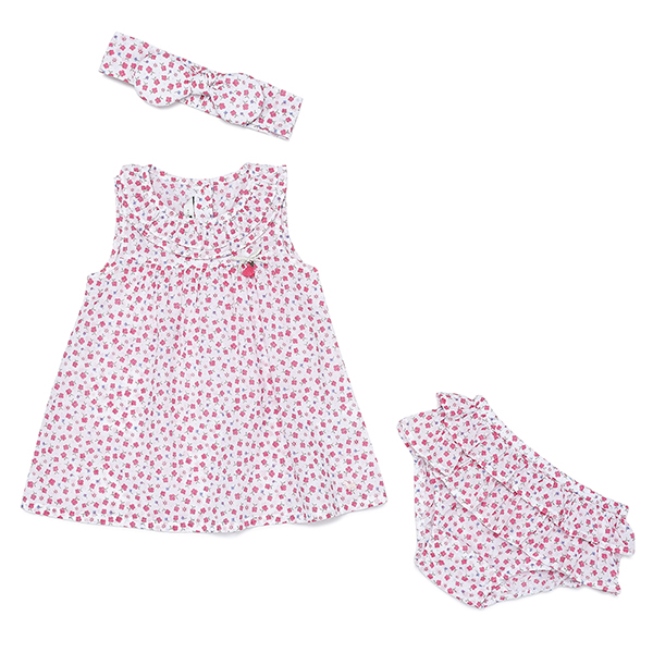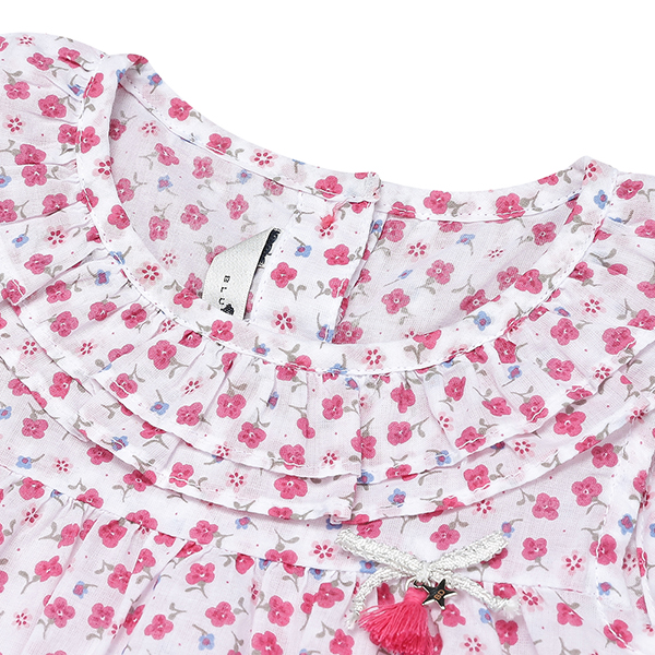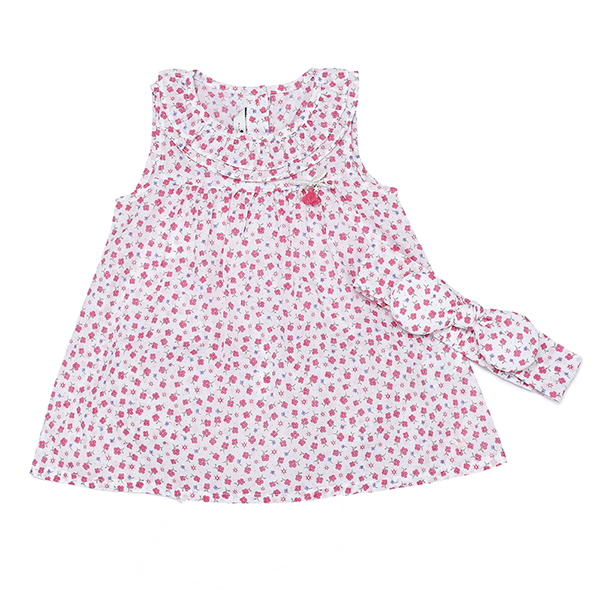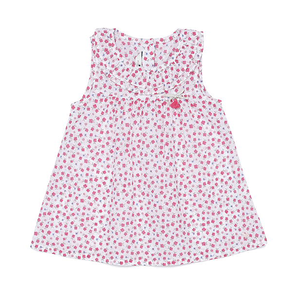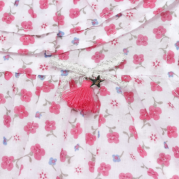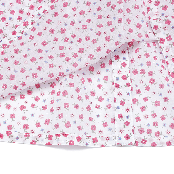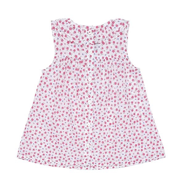 또렷한 컬러감의 플라워 패턴을 사용한 여아 원피스 입니다.