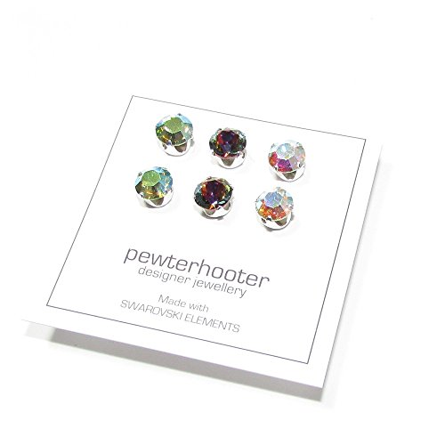 -. Feature : HERREN. 3 PAAR ORRSTECKER SILBER / VOLCANO, AURORE BOREALE AND PSYCHEDELIC PERIDOT SWAROVSKI KRISTALLE / SILBER OHRSTECKER GESTEMPELT 925 / DURCHMESSER DES STEINS 6MM / SCHMUCK-GESCHENK-BOX