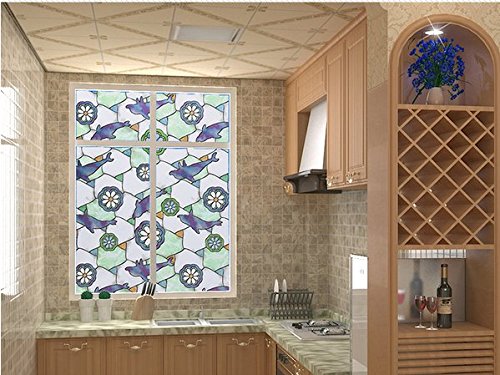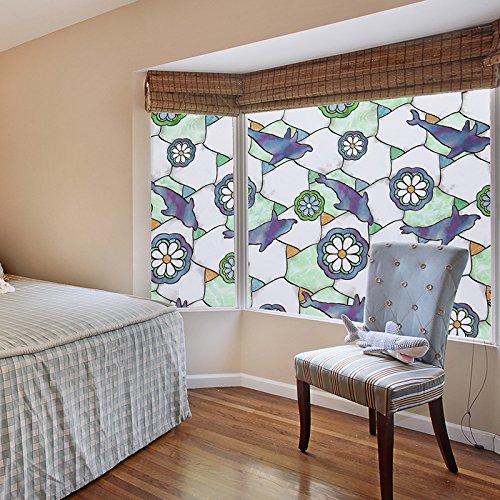 Veoley Decorative Privacy Window Film Frosted Window Film Stained Glass Window Film Window Clings No-glue Self Static Cling for Home /Bedroom /Bathroom/ Kitchen /Office 17.7 by 78.7 Inches