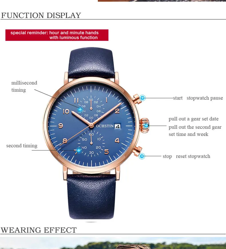 Feature:Complete Calendar,Auto Date,Water Resistant,Chronograph,Luminous