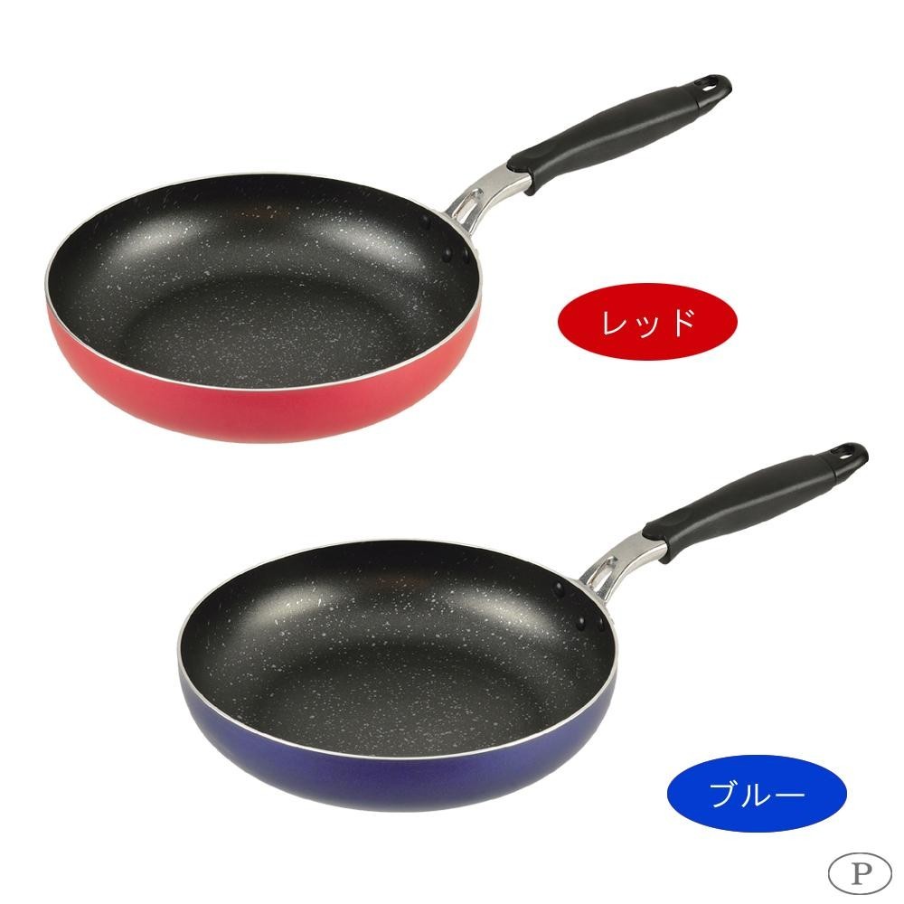 | 内面4層でマーブル加工が施されたフライパンです。金属ヘラOKで、キズ・汚れに強い! |