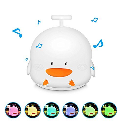 [♫3 Light Modes & Tap Control♫]: Press the main power button on the bottom to turn it on/off. Tap the soft silicone surface to switch among warm yellow mode, 7-color breathing light mode (Changed Colors Every 3 Seconds in Turn) and musical duckling sound 7-color breathing mode, making it a romantic sweet nursery baby night lamp companion. Pretty sensitive vibration sensor allows you to control lights at will.