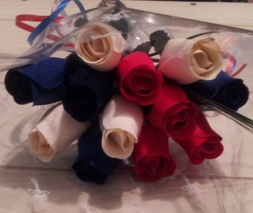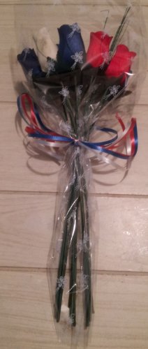 PATRIOTIC HOLDIDAY FLOWERS 1 DOZEN RED, WHITE, AND BLUE WOODEN ROSES FOURTH OF JULY MEMORIAL DAY PRESIDENTS DAY.
