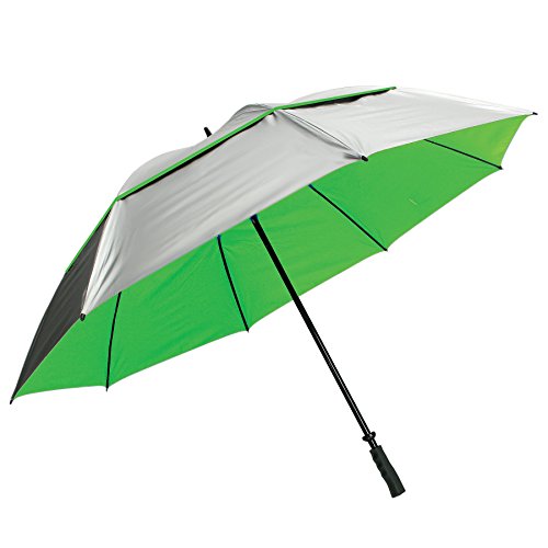 -. Feature : Silver Coating reflects heat away from you to cool you down. 55+ UPF for the highest Protection from UVA, UVB, and uvc rays / 100 percent Nylon canopy, double-canopy vortec venting System prevents umbrella from inverting during high winds. Built to provide Protection from rain, hail, snow, sleet, or the hot Sun / Sturdy, lightweight fiberglass shaft and ribs provide extra safety in event of a lightening Storm / Canopy opens to a 68 arc, 57 diameter, big enough to provide Protection for one or two people for any weather Condition from Winter storms to the long hot days of Summer / Ergonomic handle provides comfortable grip for both left and right-handed users and fits into most golf cart umbrella mounts