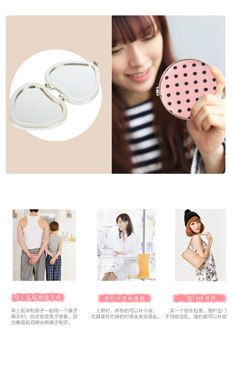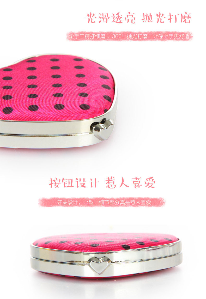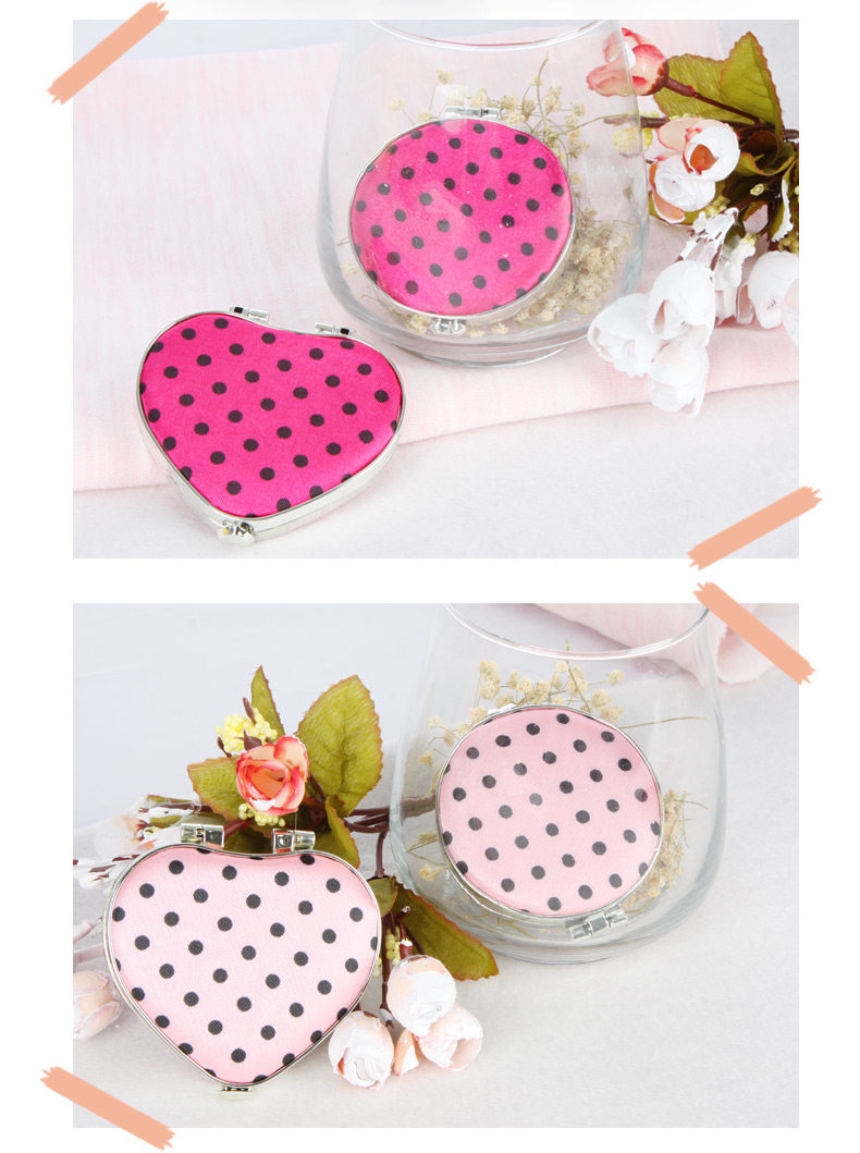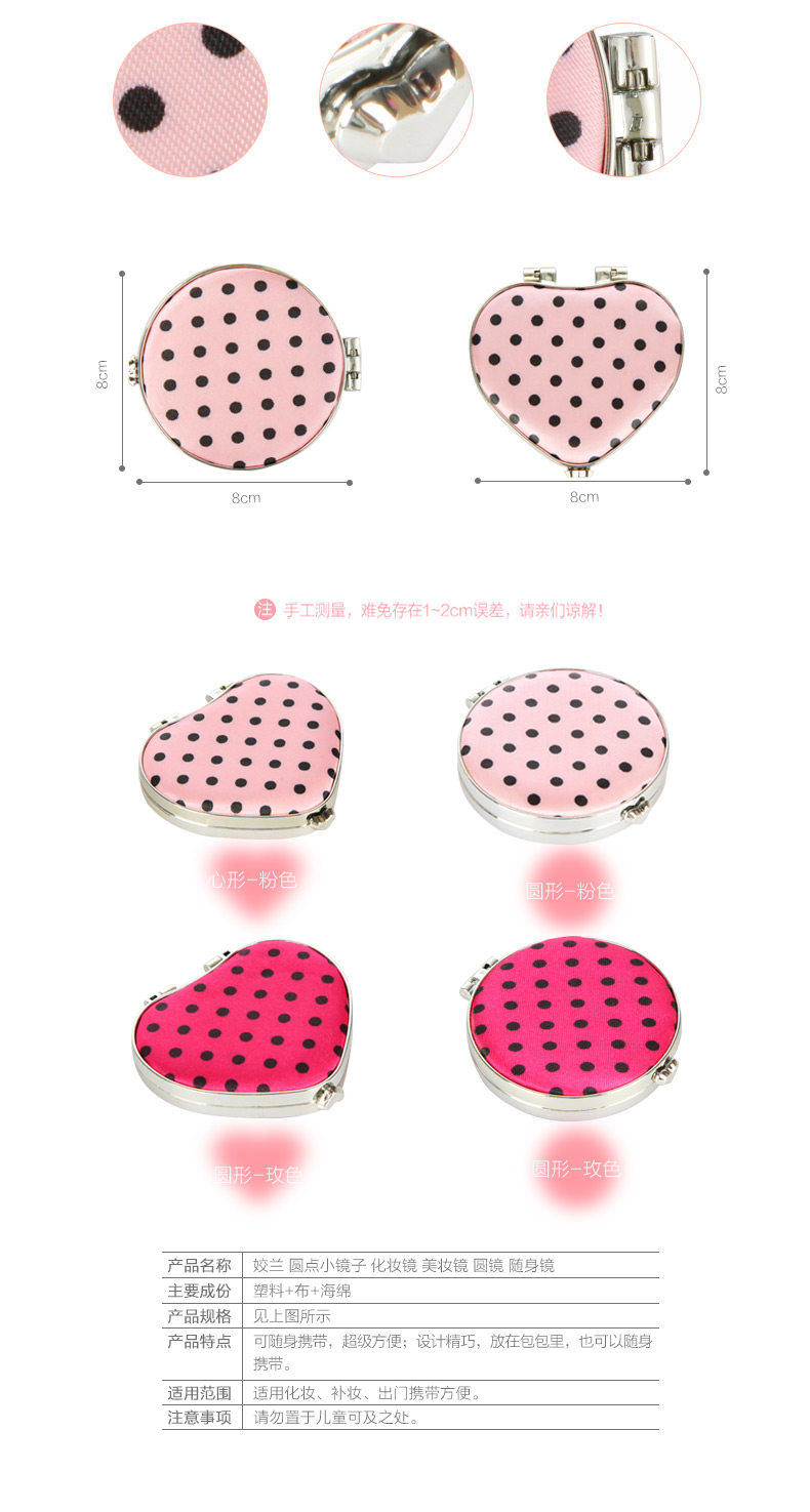 󰄬姣兰  粉红色可爱心形圆点小镜子化妆镜 美妆镜 圆镜 随身镜