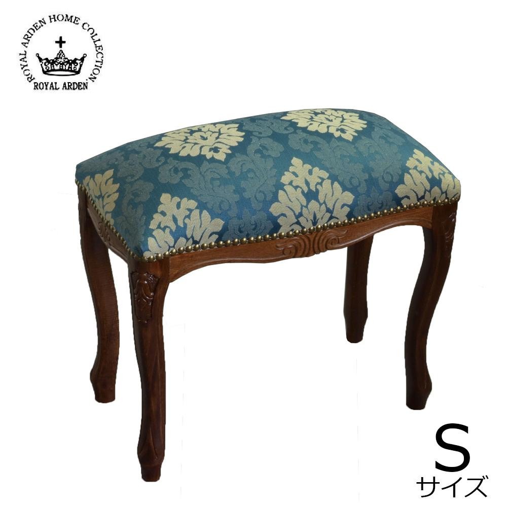 アンティーク調のおしゃれなスツールです。エレガントなお部屋にぴったり。 製造国:イタリア 素材・材質:脚:天然木ビーチ材ファブリック:ポリエステル52%、綿48% ※サプライヤー直送品 ※2018年11月下旬入荷分予約受付中【商品名】ロイヤルアーデン イタリアスツール Sサイズ ブルー 茶脚 51456