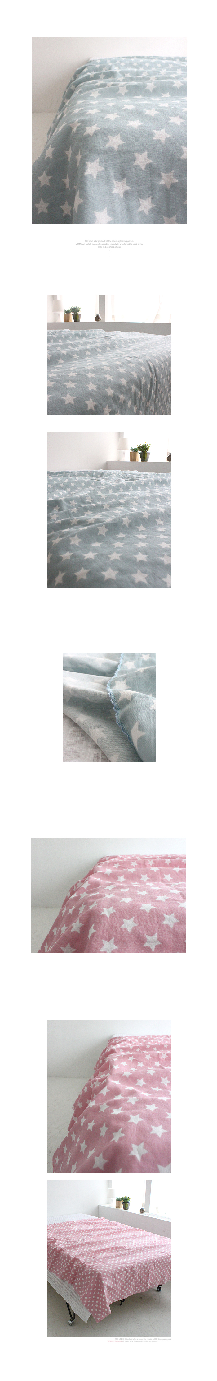 *제품설명* 이중거즈면의 촉감좋은 소재의 블랭킷입니다. 끝부분을 핀코트처리로 좀 더 아기자기하게 포인트를 줬구요... 싱글이불정도의 사이즈로 성인아동 모두 편하게 사용하기 좋아요... 한겨울 빼고는 너무나 실용적인 이불이죠... 에어컨바람 나올때..외출시에 갖고 다니기에도 좋구요.. 간단하게 쇼파공간이나 아이들 낮잠잘때어린이집에서 사용하기에 좋구요.. 이중거즈여서 너무 얇지도 않은 소재여서 특히나 아이들에게는 더욱 좋은 제품입니다. 컬러는 두가지이구요...모두 파스텔톤이어서 이쁜 컬러감입니다. 선물하기에도 좋을 거 같아요...별패턴으로 귀여운 제품이랍니다.