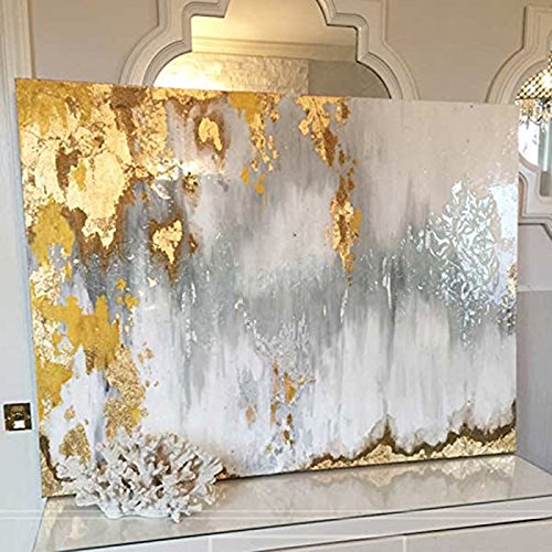-. Title : Orlco Art Modern Abstract Oil Painting Hand Painted Wall Art Gold,Gray,White etc 'buried treasure '