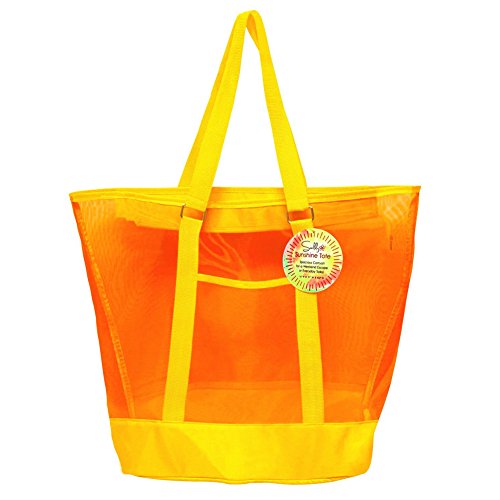 -. Title : SunLily Mesh Sunshine Tote with Zipper and Strap (Yellow/Orange)