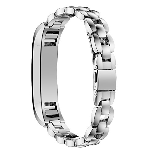 Fitbit Alta Bands AIRED Strap Smartwatch Accessories Replacement Watchbands With Stainless Steel Metal And Safety Clasp For Fitbit Alta Fitness Tracker (Silver-Type A)