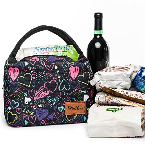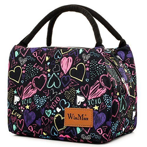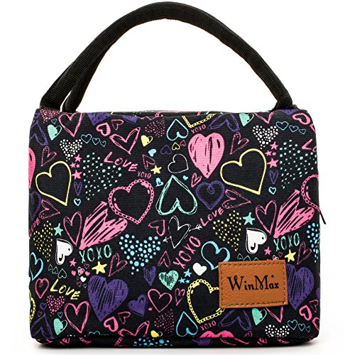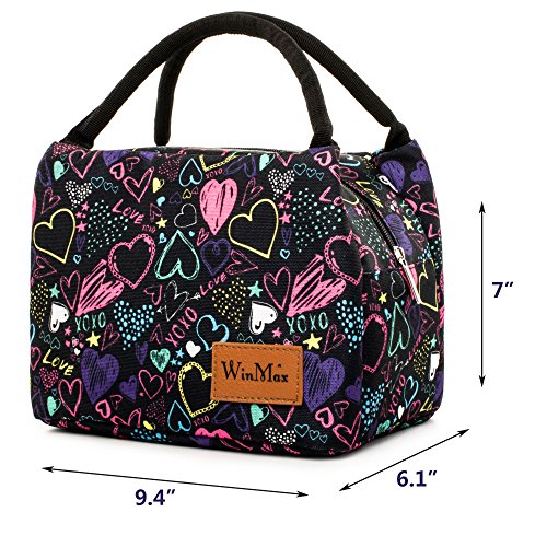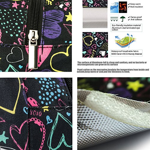 Fashionable Lunch Box for Women Insulated Cute Lunch Bag Girls - Pink/Heart/Colour stripe