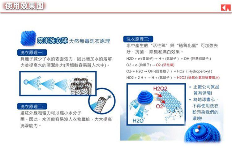 1: laundry ball In the washing process, the multi-component particles with water release a large number of negative ions and strong far-infrared, cut off the hydrogen of water molecules combine to make water molecules micronized to form active water molecules, while he also reduces water ORP value And the surface tension, increase the PH value, so that water molecules easily penetrate into the clothing fiber so that stains and fibers can be loosened, the stains quickly separated from the fibers in the washing machine stirring to achieve strong decontamination effect.