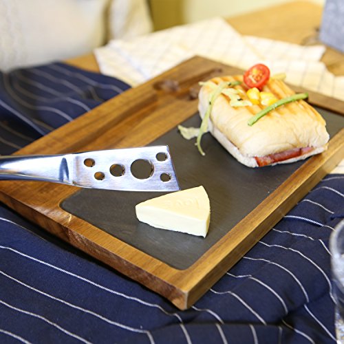 Product Description Gourmet Gift set for cutting and displaying your cheese--cheese knife design special, paneling is slate, slate is natural environmental protection, plank for Acacia Wood, integrated design, easy to storage. 0