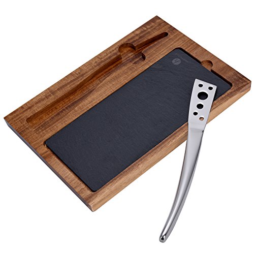 (HUFTGOLD)/Kitchen Dining/Tableware/DIRECT FROM USA/HUFTGOLD Stainless Steel Soft Cheese Knife with Natural Slate and Wood Board. Cheese or Dessert...
