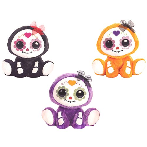 -. Title : Aurora World Plush - Day of the Dead - SET OF 3 Skeletons (Black, Purple & Orange)