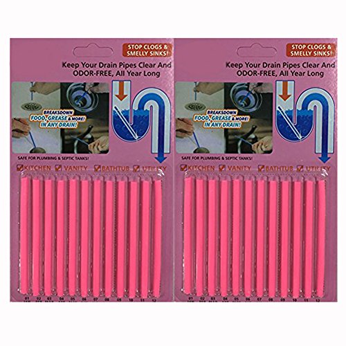 -. Brand : Dragon Honor -. Color : Multicolor -. EAN : 0717643028260 -. Feature : Breaks down grease, fat and food which cause blockages and bad smells. / Uses powerful natural bacteria and enzymes / Keeps your drains free flowing and clean smelling / Each pack of drain sticks contains 12 sticks, enough to help prevent blockages and bad smells for 1 year / Avoid embarrassing smells and nasty water buildup in sinks and showers with just one Sani Stick per month -. ProductGroup : Kitchen -. ProductTypeName : KITCHEN -. Title : DragonHonor 24pcs(2 Packs) Rose Enzymatic Drain Sticks - Helps to Prevent Blockages Forming - 1 Year of Protection Per Packet -. UPC : 717643028260