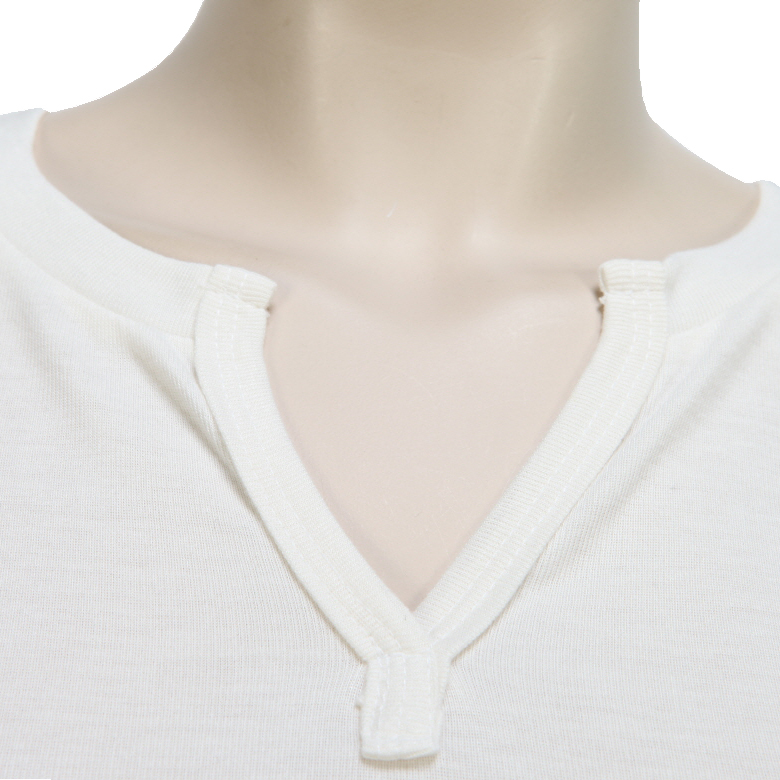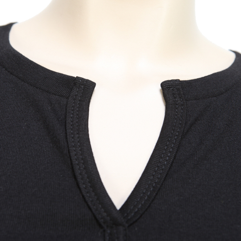 변형된 브이넥으로 되어있어 앞라인을 예쁘고 여성스럽게 만들어줍니다