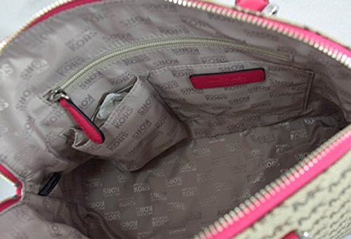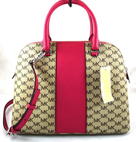 MICHAEL KORS CINDY CENTER STRIPE ULTRA PINK BROWN LARGE DOME SATCHEL HANDBAG