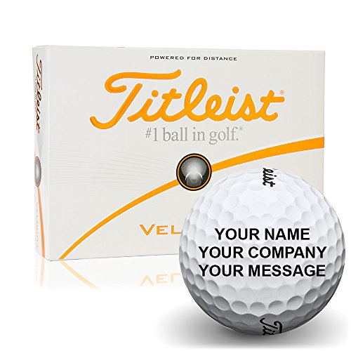 -. Binding : Misc. -. Brand : Titleist -. Department : mens -. Feature : Personalize your balls with up to 3 lines of text / A maximum of 17 characters on each line -. Label : Titleist -. Manufacturer : Titleist -. ProductGroup : Sports -. ProductTypeName : SPORTING_GOODS -. Publisher : Titleist -. Studio : Titleist -. Title : Titleist Velocity Personalized Golf Balls