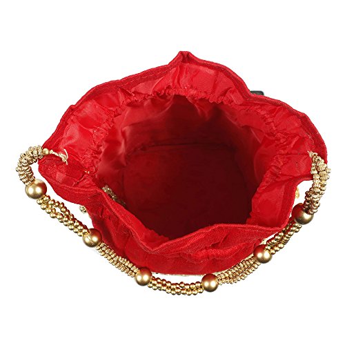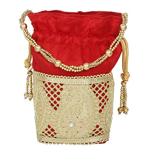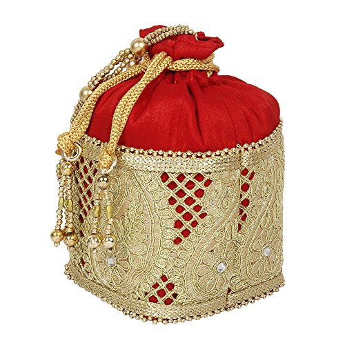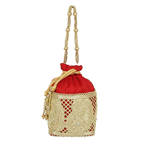 (Purse Collection)/Accessories/Handbags/DIRECT FROM USA/Purse Collection Fabulous Drawstring Red Colour Potlli With Embroidery Work Purse For Women