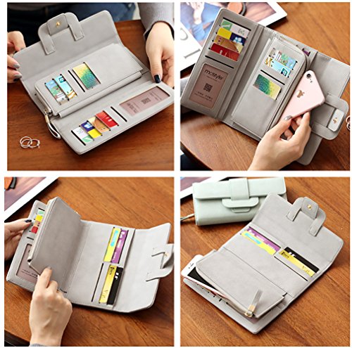 Womens Rfid Blocking Leather wallet ladies long wallet Travel purse Multi Card