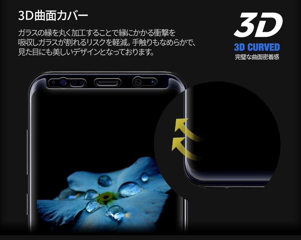 | 商品説明 | ● 全面を守る3Dフルカバーガラス ● 優れたタッチ感と快適操作 ● 3D曲面カバー ● 99%の透過率 ● 表面硬度9H ● ガラス飛散防止加工 全面粘着型フィルムの特徴 それにも関わらず、既存のプラスチックフィルムと異なり、気泡発送がほとんど起きず、取り付けも簡単です。 精密な3D形状で液晶画面のエッジの曲面部分までしっかり保護します。 |