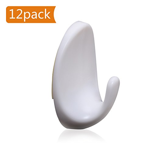 Lee Outdoor 12-Hooks, Versatile Powerful Adhesive Wall Hooks,Water Resistant Hooks,White