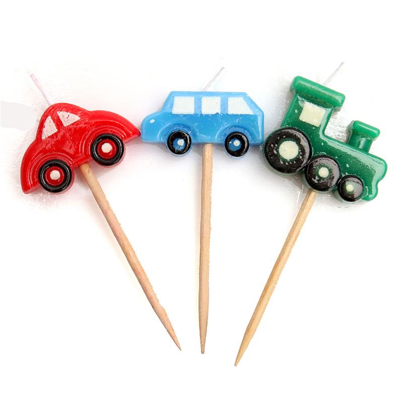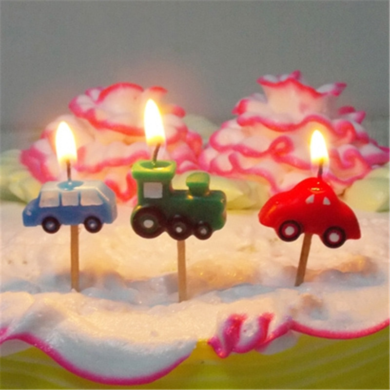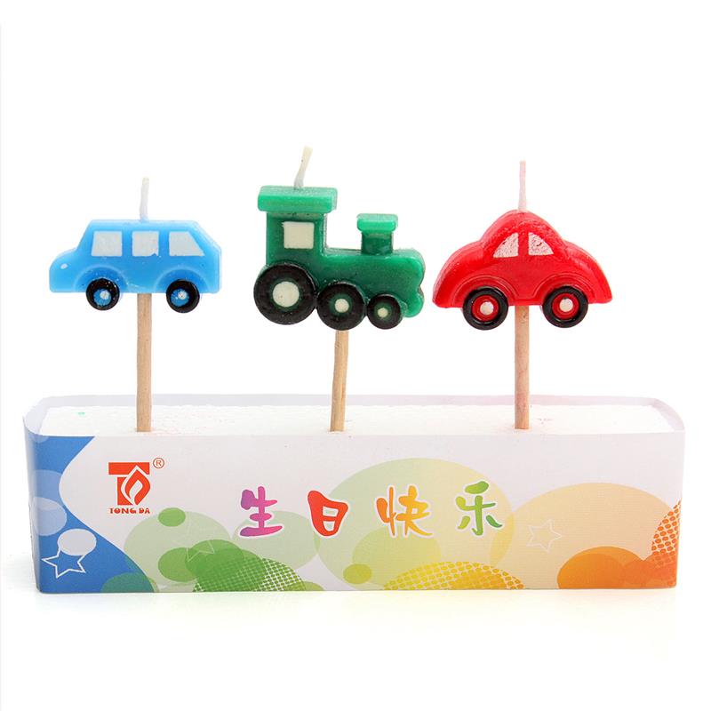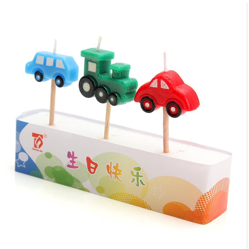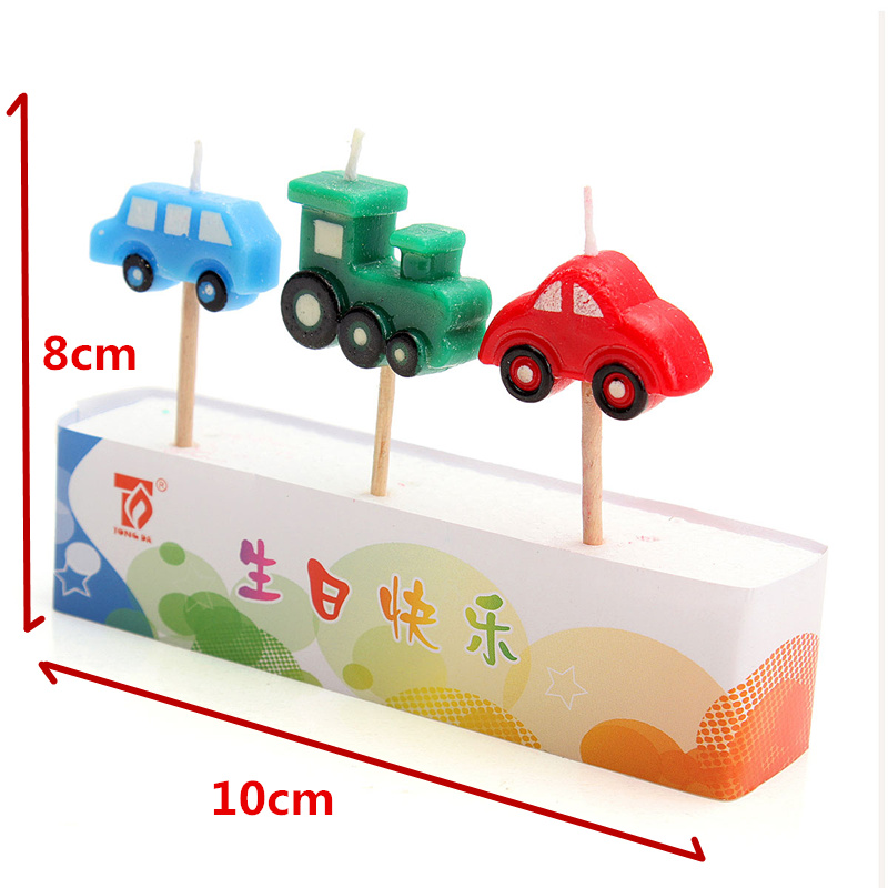 Package included: 3 Pcs/lot Cake Candle Set (1*Red Car, 1*Green Train, 1*Blue Van)
