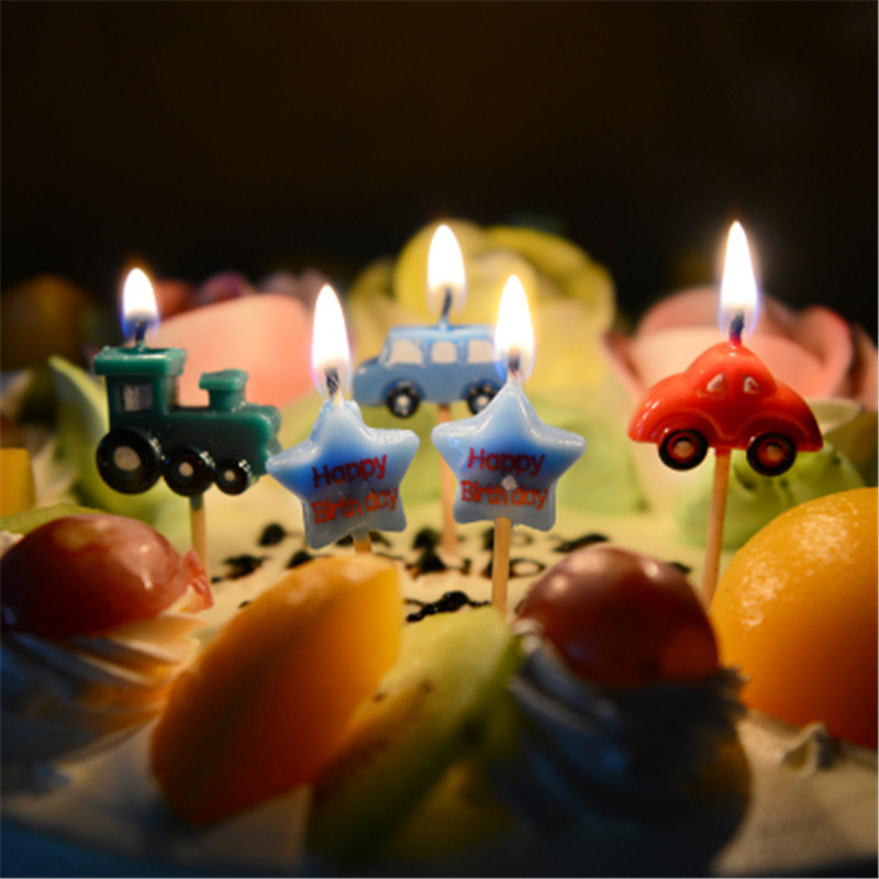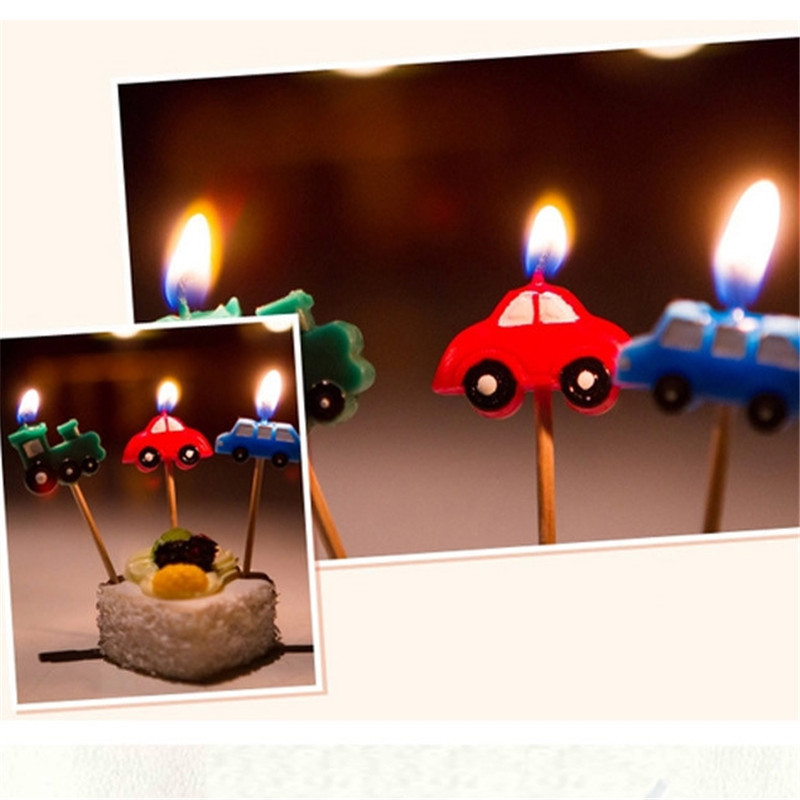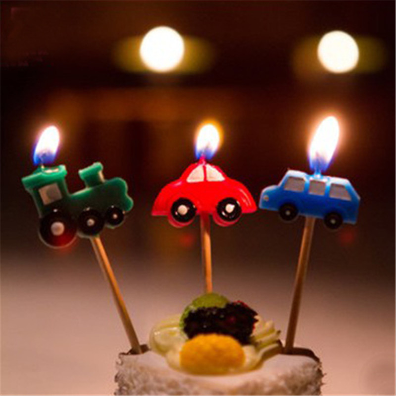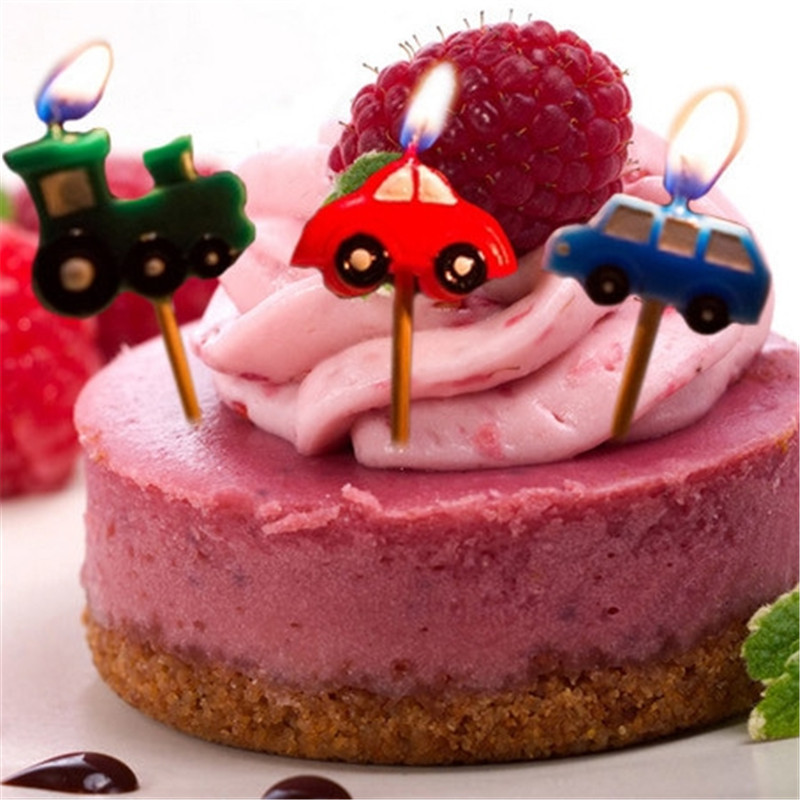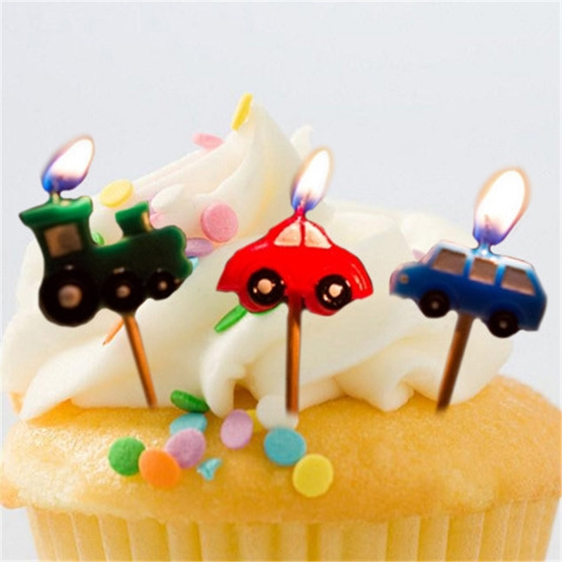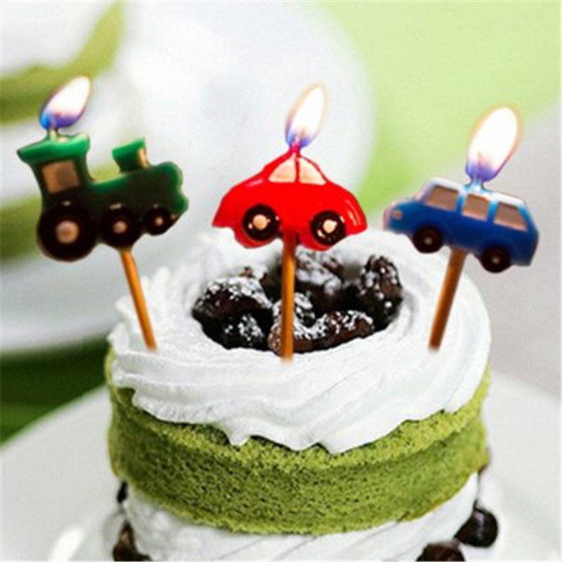 Package included: 3 Pcs/lot Cake Candle Set (1*Red Car, 1*Green Train, 1*Blue Van)
