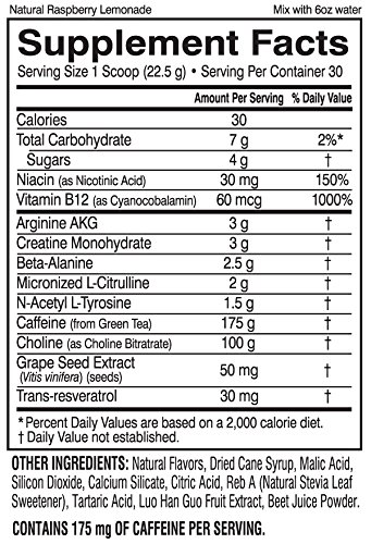 ReleaseDate : 2017-01-31 Studio : Performance Inspired Nutrition Publisher : Performance Inspired Nutrition Binding : Health and Beauty Product Description Performance Inspired's Pre-Workout supplement powder is loaded with 2g of Citrulline (one of the hottest all-natural ingredients on the market), 3g of Arginine AKG, 2.5g of Beta-Alanine, 3g of Creatine Monohydrate, and over 1200mg of active ingredients to ignite your energy. Mix this delicious Raspberry Lemonade or Tropical Punch training supplement with water, and get cranked up for a killer workout without the shakes or quakes afterward. 0