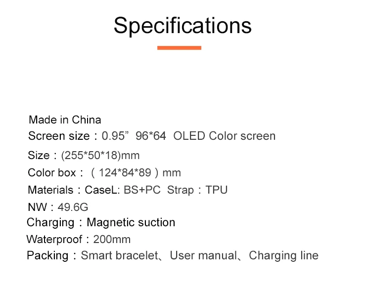 Function:Passometer,Sleep Tracker,Heart Rate Tracker,Alarm Clock,Remote Control,24 hour instruction,Message Reminder,Call Reminder