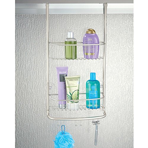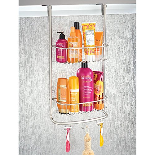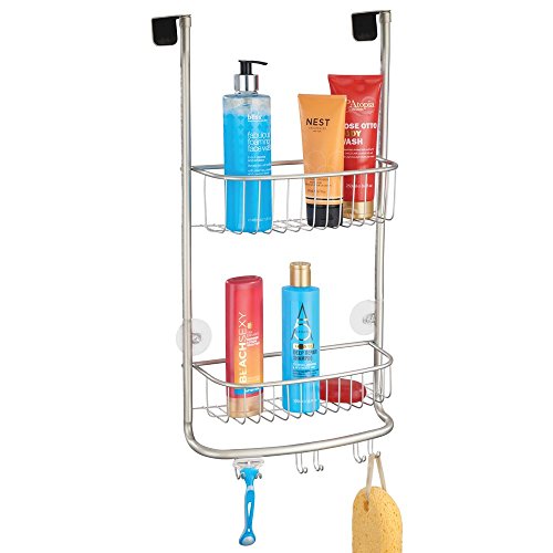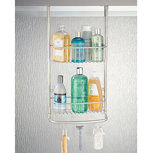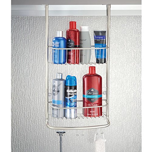 mDesign Over-Shower-Door Shower Caddy for Shampoo, Loofahs, Conditioner - Satin