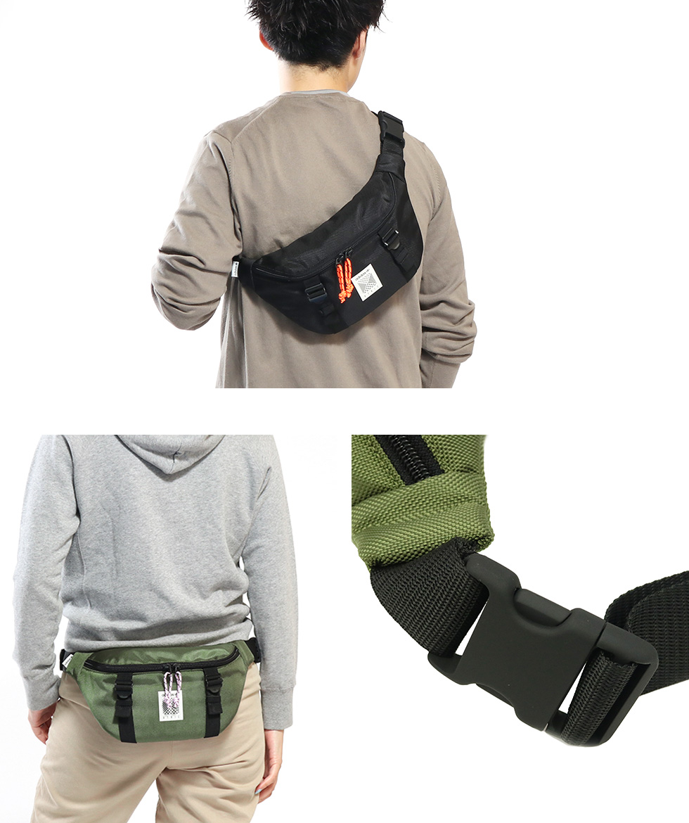 男女問わず使えるだけでなく、その日のコーディーネートに合わせてウエストバッグとしてもボディバッグとしてもお使いいただけます。また、ストラップにはバックルを装備し、ジャストフィットに調節できる仕様となっています。