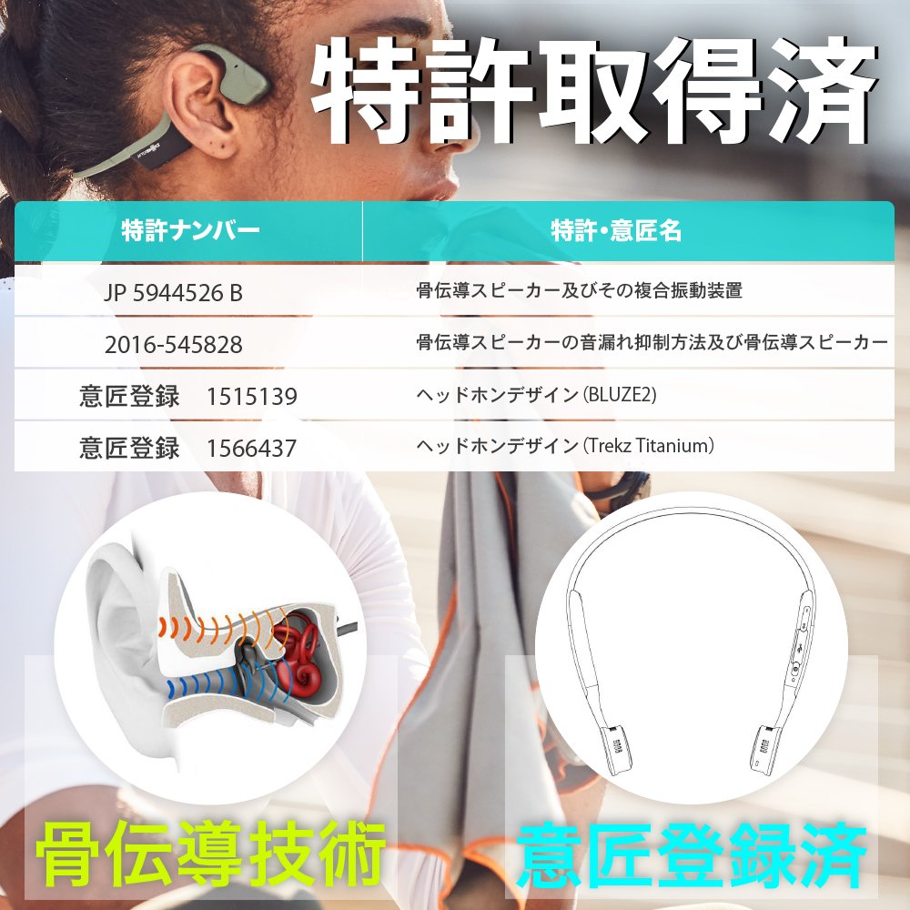 With patented bone conduction technology, TREKZ AIR can enjoy music without obstructing the ear.