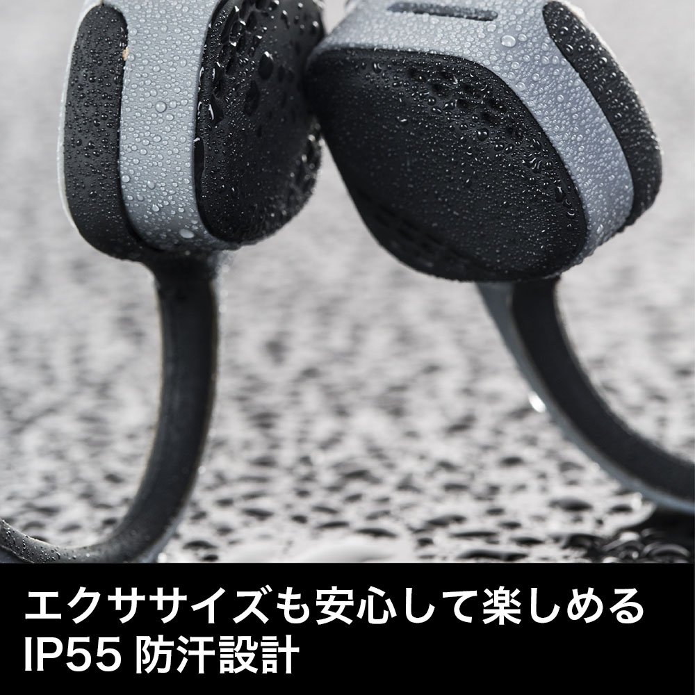 TREKZ AIR has acquired the IP55 waterproof standard and can be used with confidence even when sweating with exercise, even in light rain and the like.
