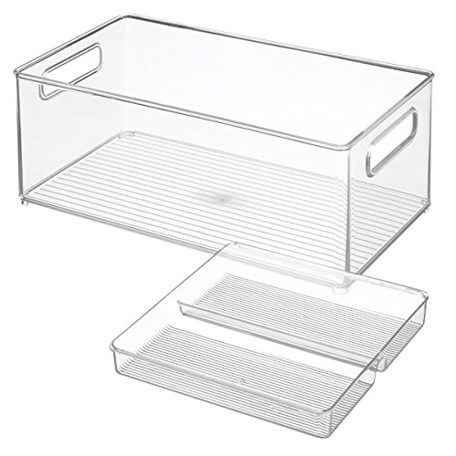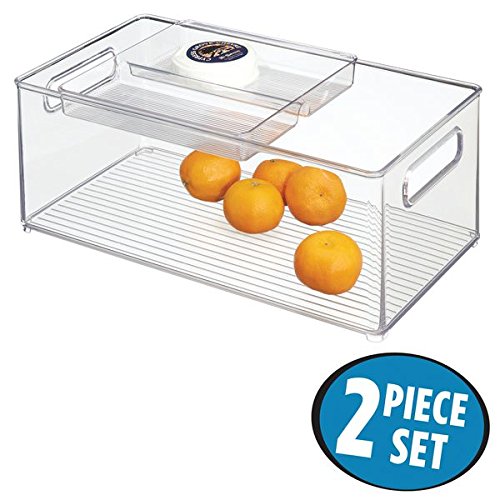 mDesign Kitchen Storage Bins for Pantry, Refrigerator - 8" x 14" x 6", 2 Piece Set, Clear