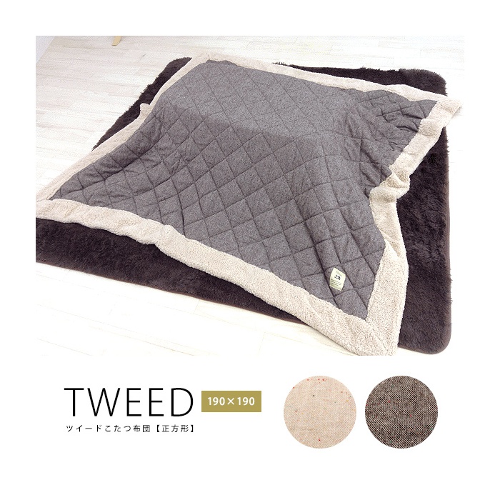 Rakuten 80×80cm (책상이나 카운터의) 널찍하고 평평한 윗부분 대응 난로 이불「TWEED」정방형190cm×190cm 트위드 퀼트×보아 세련된박 걸이 난로 이불 각로 커버 심플 북유럽