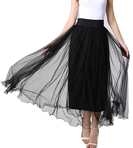 -. Title : Mullsan Women Retro Vintage Double Layer Chiffon Pleat Maxi Long Skirt Dress