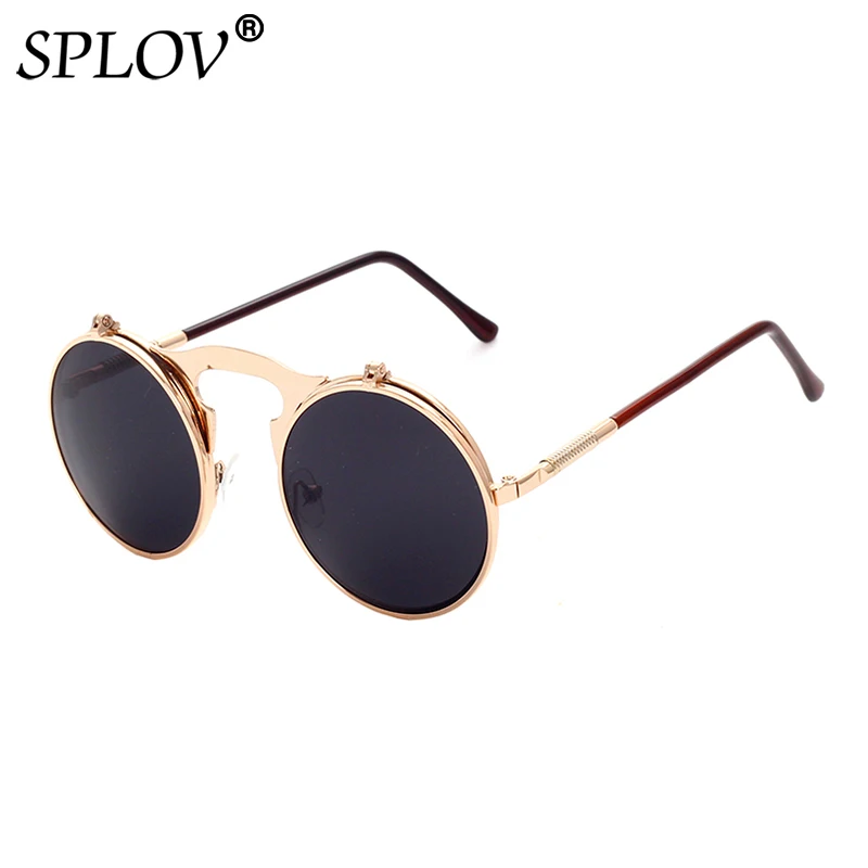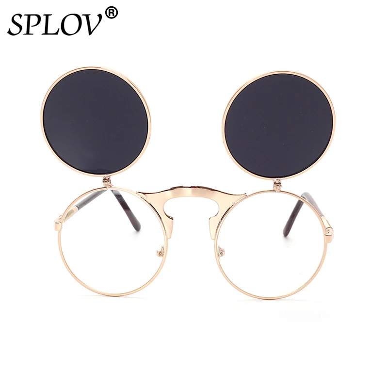 Style: Round,Vintage,Retro,Steam punk,Fashion,Classic, Circel Flip Sunglasses