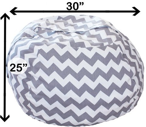 LARGE BUT NOT GIANT SO A MANAGEABLE SIZE TO TODDLERS TO MOVE. You still want you child to be able to move the bag on their own. The giant bean bag chair bags, even with just stuffed toys are too heavy for little ones to move on their own making it unmanageable for them to pull around. Our bag is large enough to hold an over flowing laundry basket of stuffed toys but small enough that the kids can still move it around when full.