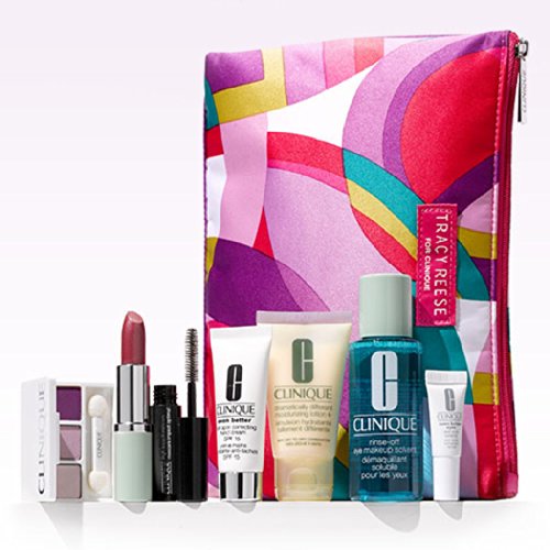 -. Feature : Even Better Eyes Dark Circle Corrector (0.1 oz.) + Even Better Dark Spot Correcting Hand Cream Broad Spectrum SPF 15 (0.5 oz.) / Rinse-Off Eye Makeup Solvent (2 oz.) + Different Lipstick in Raspberry Glace / Dramatically Different Moisturizing Lotion+ (1 oz.) + High Impact Mascara in Black (0.14 oz.) / All About Shadow Trio in three shades from Going Steady Quad / Cosmetics Bag Desinged by Tracy Reese