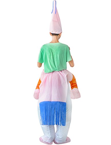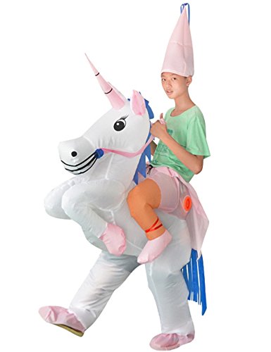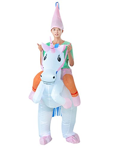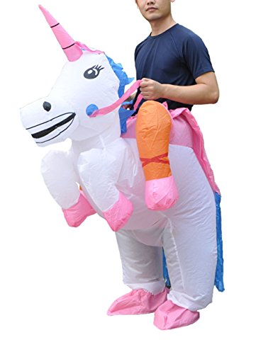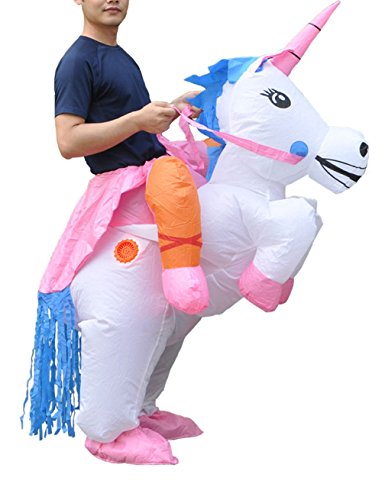 -. Brand : Gameyly -. Department : mens -. Feature : Material: 100% lightweight durable polyester. / One size fits most adults.(5.3-6.6 feet tall ) / Battery-powered fan unit included with lightweight battery pack. / Easily folds away for compact storage between adventures / This costume is perfect every occasion(you get the idea), such as Halloween, birthdays, costume parties, job promotions and weddings. -. ProductGroup : Apparel -. ProductTypeName : ADULT_COSTUME -. Title : Gameyly Adult Inflatable Unicorn Costume Horse Rider Outfit Fancy Dress